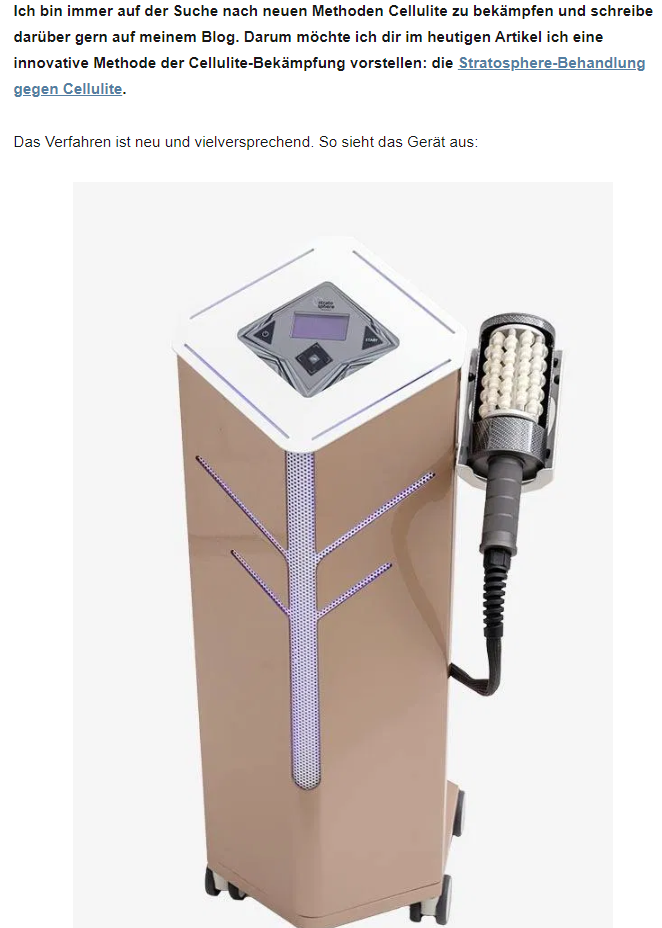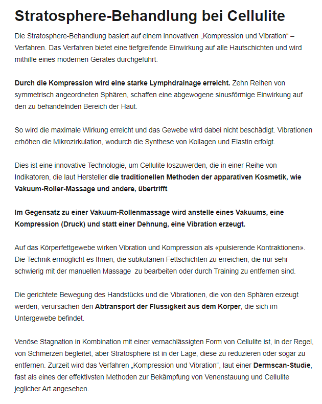 В статье происходит знакомство немецких читателей с новой, эффективной методикой против целлюлита.