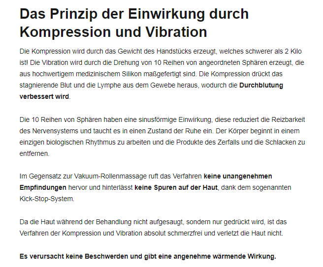 В статье происходит знакомство немецких читателей с новой, эффективной методикой против целлюлита.